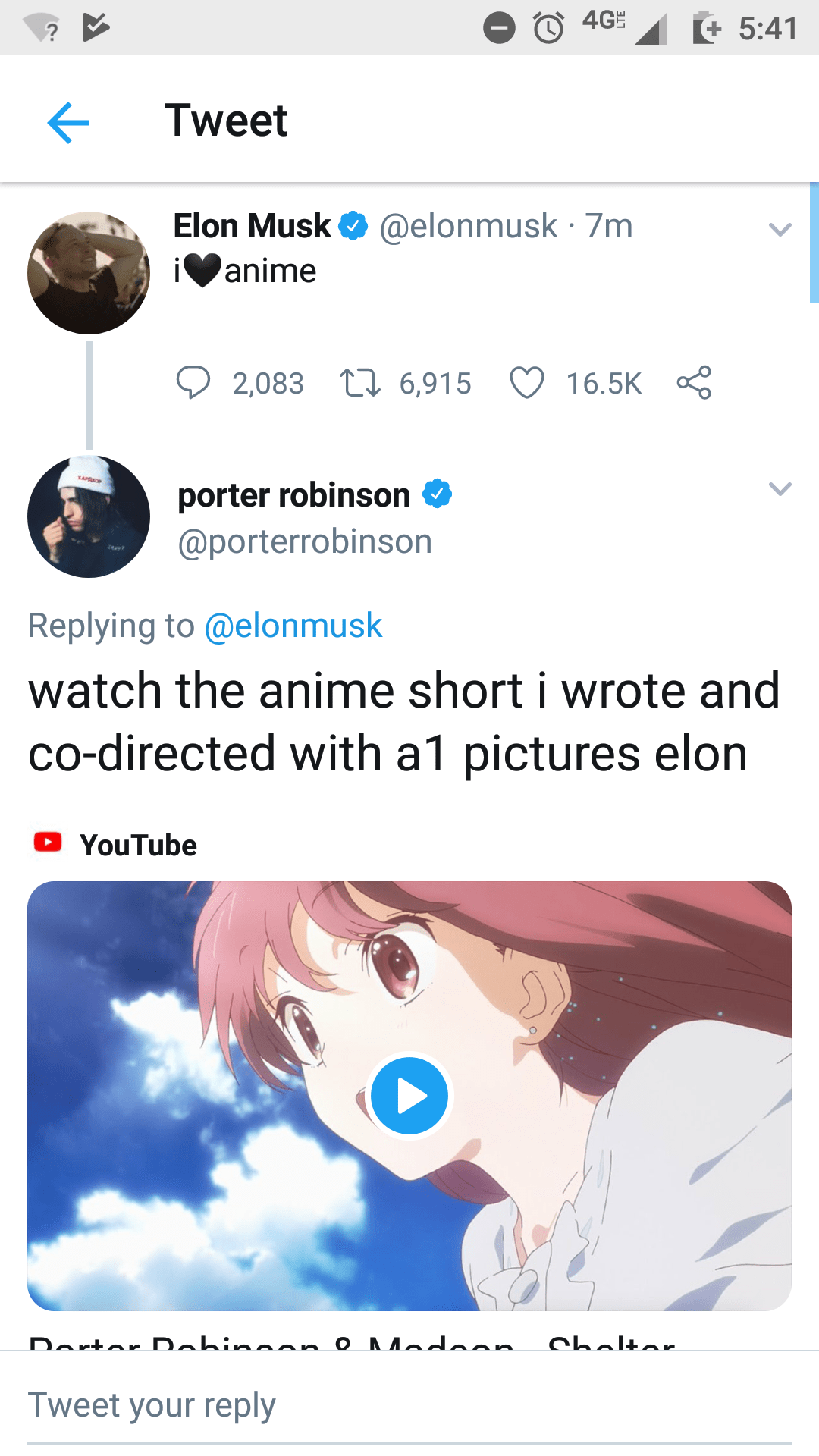 I never thought id see the day that grimes and elon musk have matching anime profile pics this is truly the worst timeline.